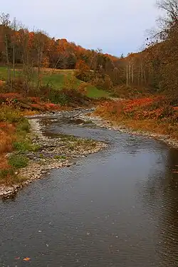 Bowman Creek (also known as Bowmans Creek or Bowman's Creek) is a tributary of the Susquehanna River in Luzerne County and Wyoming County, in Pennsylvania, in the United States. It is approximately 26 miles (42 km) long and flows through Ross Township and Lake Township in Luzerne County and Noxen Township, Monroe Township, and Eaton Township in Wyoming County.[1] The watershed of the creek has an area of 120 square miles (310 km2). The creek is not designated as an impaired waterbody and its pH is close to neutral, although it has experienced some problems with acid rain. It has low concentrations of dissolved solids like calcium. The creek is relatively small in its upper reaches, but by Noxen, its width is 40 to 60 feet (12 to 18 m). It is also relatively shallow in many reaches. Rock formations in the watershed include the Catskill Formation, the Huntley Mountain Formation, Burgoon Sandstone, the Mauch Chunk Formation, the Pottsville Group, and the Pocono Formation. Soil associations in the creek's watershed include the Wellsboro-Morris-Oquaga association, the Oquaga-Lackawanna-Arnot association, the Mardin-Bath-Volusia association, and the Wyoming-Pope association.