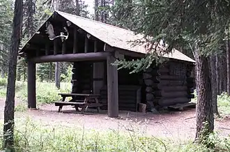The Bowman Lake Patrol Cabin in Glacier National Park, Montana, United States, is a rustic back-country log cabin. Built in 1934, the cabin has a single room, with a front porch extension to create a shelter from snowfall.[2]
