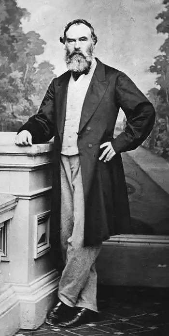 Finniss was elected as one of the representatives for the city of Adelaide and became the first premier and Chief Secretary of South Australia. There were early difficulties between the two houses but Finniss, during the four months his ministry was in power, succeeded in passing measures to deal with waterworks for Adelaide and commence the first railway in South Australia. From June 1858 to May 1860, he was treasurer in the Richard Hanson ministry and, at the 1860 election, he was, with John Dunn, elected as one of the two representatives for Mount Barker.[6][7]