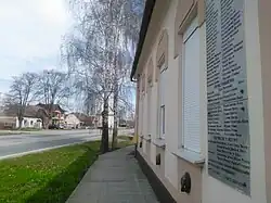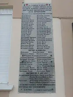 Serbian Cyrillic inscription on 1962 World War II memorial in the centre of the village.