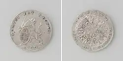 | 14 Florins[3][4] | Reverse: Lion regardant, brandishing sword and a shield labelled Libertas Obverse: 11 coats of arms around a central sun |