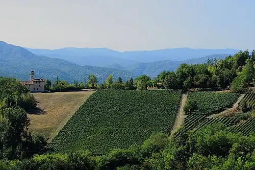 The DOCG zone of Brachetto d'Acqui include the Monferrato hills that extend southeast from the town of Asti with some overlap into the Asti DOCG zone. The region includes the valleys along the Bormida and Belbo rivers as they flow into the Tanaro. The communes of Acqui Terme and Strevi are at the heart of the winemaking region.[1]
