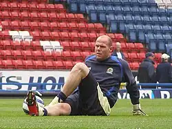 On November 7, 2000 Friedel was signed to Blackburn Rovers by his former Galatasaray manager Graeme Souness, on a free transfer.[21] He made his debut in the Football League First Division on November 18 in a 1–0 home win over Wolverhampton Wanderers, in which he made a close-range save from Tony Dinning.[22] His team ended the 2000–01 season with promotion, ending a two-year spell outside the Premier League.[23]