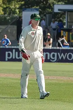 Bradley James Haddin (born 23 October 1977), is an Australian former cricketer, vice-captain and coach who represented Australia in all three forms of international cricket. He played domestically for New South Wales as a right-handed batsman and wicket-keeper. Haddin was a member of the Australian World cup winning squad at both the 2007 Cricket World Cup the 2015 Cricket World Cup and played for the Sydney Sixers in the Big Bash League.[2]
