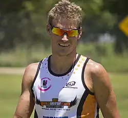 Bradley Kahlefeldt (born 27 July 1979) is an Australian triathlete born in Temora, NSW. Kahlefeldt has lived in the city of Wagga Wagga since 1982.[1][2] Brad now splits his time between the Gold Coast and France during the European summer. He won the gold medal in the 2006 Commonwealth Games Triathlon. Brad has three World Championship Bronze Medals (2005, 2007, 2010) twice while it was called the World Championship and once while it was called the World Championship Series (see ITU World Triathlon Series for details) and also competed in the 2008 Beijing Olympic Games[2] and 2012 London Olympic Games.