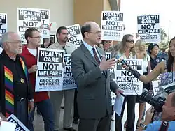 Sherman has said he is "opposed to creating a voucher system for Medicare". He wants to avoid "turn[ing] Social Security into a welfare program", instead keeping it "for people who contribute to it".[39] Sherman has consistently earned a 100% rating from the National Committee to Preserve Social Security and Medicare and the AARP.[40] He supports the Patient Protection and Affordable Care Act. Sherman helped secure funds to develop a new women's and children's patient wing at El Proyecto del Barrio's Family Health Care Clinic in Winnetka.[41]