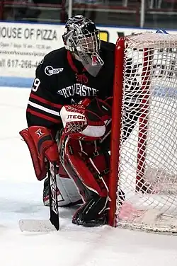 In Thiessen's junior year during the 2008–09 season, he led the team to one of its most successful seasons, including its first trip to the NCAA tournament in over 15 years. He was the 2008–09 Hockey East Player of the Year, a Hockey East all-star, an NCAA All-American, and a finalist for the Hobey Baker Award.[2] That season, Thiessen set school records for wins (25), goals against average (2.12), save percentage (.931), saves (1,195), games (41) and minutes played (2,495:44).[3] He led the NCAA in saves, was third in minutes played, and fourth in save percentage.[4] He also became Northeastern's all-time top goaltender in goals against average (2.40), save percentage (.922) and shutouts (9).[3]