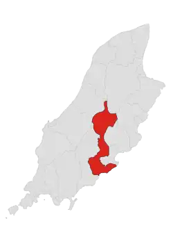 It is located on the east of the island (part of the traditional South Side division) in the sheading of Middle.
