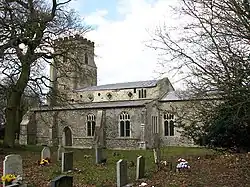 West Bradenham's parish church is dedicated to Saint Andrew and located on Church Lane. The church is early Medieval in origin and features stained-glass windows depicting the Gospels by the O'Connor Brothers and an east window depicting the Crucifixion of Christ by William Wailes.[8] The church has been Grade I listed since 1960.[9]