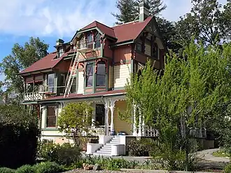 It was deemed "an exceptional example of Stick/Eastlake style." It is a two-and-a-half-story mansion built largely of redwood, and is about 60 by 56 feet (18 m × 17 m) in plan. It is asymmetrical on all floors, with a veranda, some porches, and a steep and complex roof.[2]