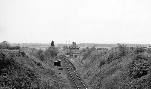 With the line being fairly agricultural, most of the traffic through and at the station was agricultural in nature, either livestock or vegetables. However, military used the line in the First World War to a depot near Myton-on-Swale,[9] and in the Second World War, the former RAF Helperby airbase was turned into an ammunition dump for the airfields of No. 6 Group RCAF.[10] This traffic continued to the Air Ministry siding until 1956.[8]