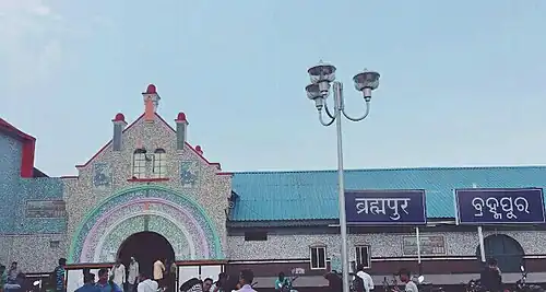 During the period of 1893 to 1896, (1,287 km (800 mi) of East Coast State Railway) this historic Brahmapur station was built and opened to traffic in 1896. Bengal Nagpur Railway's line to Brahmapur (Berhampur) was opened on 1 January 1899.[1]