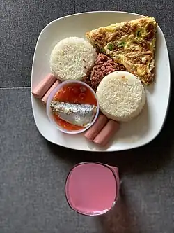 Braised rice is a Ghanaian style of cooking rice. It is known as angwa moo in the Akan language, literally "oil rice" or omɔ kɛ fɔ(omor ker for) in the Ga language.[1] It is prepared with few ingredients.[2][3] and is usually balanced with some vegetables and any other accompaniment to balance the diet.[1][4] The braised rice is served with ground pepper or shito, and served with fried eggs, omelette or sardine.