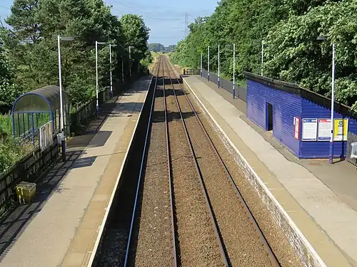 The station has two platforms, both of which have a ticket machine (which accepts card or contactless payment only), seating, waiting shelter, next train audio and visual displays and an emergency help point. There is step-free access to both platforms, however the Carlisle-bound platform is not fully accessible from the station's car park. Both platforms are also linked by a pre-grouping metal footbridge, similar to those at Haltwhistle and Wetheral. There is a small car park at the station.[13]