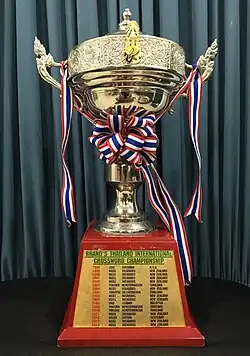 The tournament has been honoured to accept a trophy from His Majesty the King to award to the winning player in the most prestigious division.[1] It is the largest Scrabble tournament in the world, in terms of the number of players, drawing as many as 8,000 players.