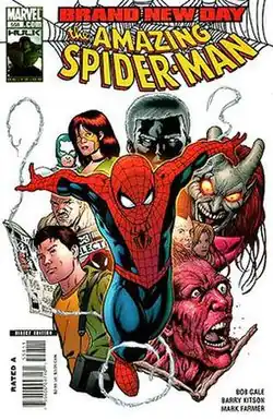 "Brand New Day" is a comic book storyline in The Amazing Spider-Man, published by Marvel Comics beginning in 2008. It chronicles the start of Spider-Man's adventures in the aftermath of the status quo-altering "One More Day" storyline,[1] and continues afterwards into "Spider-Man: Big Time".