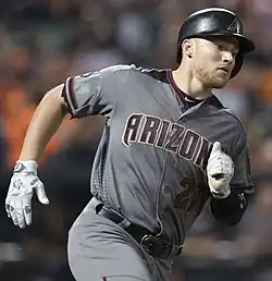 In 2015, the Diamondbacks invited Drury to spring training and assigned him to Mobile to begin the season.[12][13] On June 23, he was promoted to the Reno Aces of the Triple-A Pacific Coast League.[14] The Diamondbacks called Drury up to the major leagues on September 1, 2015, and he made his debut that day.[15] Drury collected his first major league hit, a single, off Colorado Rockies pitcher Jon Gray.[16] Drury hit his first home run on September 22, off Los Angeles Dodgers pitcher Adam Liberatore.[17]