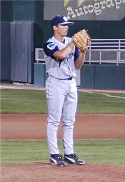 Kintzler was selected twice in a row in the 40th round of the Major League Baseball draft. He was first chosen by the New York Yankees in 2003, but chose not to sign.[8][9] The next year, he was selected by the San Diego Padres.[10] He spent parts of the 2004 and 2005 seasons with the Class A-Short Season Eugene Emeralds of the Northwest League, and also made appearances with the Rookie Arizona League Padres and the Class A Fort Wayne Wizards.[11][12] Kintzler suffered a torn glenoid labrum in the 2005 season, and the Padres released him at the end of spring training in 2006.[13][14] Rather than pitch that year, Kintzler instead moved back to Las Vegas, received shoulder surgery, and worked at Cold Stone Creamery, which he joked, "[g]ives you a strong wrist".[14]