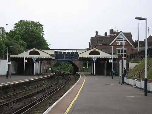Branksome railway station serves the Branksome and Branksome Park areas of Poole in Dorset, England. It is on the South West Main Line, 110 miles 51 chains (178.1 km) down the line from London Waterloo.