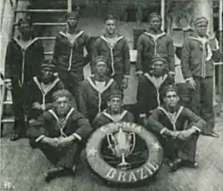 On 21 December 1917, the Brazilian Navy—at the behest of the British—formed a small naval force with the intent of sending it to the other side of the Atlantic.[16] On 30 January 1918, Bahia was made the flagship of the newly organized Divisão Naval em Operações de Guerra (Naval Division in War Operations, abbreviated as DNOG), under the command of Rear Admiral Pedro Max Fernando Frontin.[3][6] The other ships assigned to the squadron were Bahia's sister Rio Grande do Sul, Pará-class destroyers Piauí, Paraíba, Rio Grande do Norte and Santa Catarina, tender Belmonte, and tugboat Laurindo Pita.[3][6][7][16]