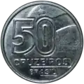 The 1, 5, 10 and 50 centavo coins issued in 1989 for use with the previous currency continued in use after the introduction of the cruzeiro. In 1990, stainless-steel 1, 5, 10 and 50 cruzeiro coins were introduced, completing the coin family started in 1989. With the exception of the value of 1 cruzeiro, issued only in 1990, the other coins of this family were issued until 1992.