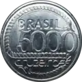 Cr$5000 1992 Portrays the bust of Tiradentes, and the lettering "Liberdade" (Liberty), "Cidadania" (Citizenship) and "Tiradentes"