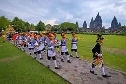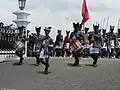 Bregada (Javanese: ꦧꦽꦒꦢ, romanized: bregada), more fully as bregada kaprajuritan is an art of soldiering that originated in the Mataram Sultanate. It adapts military elements to Javanese culture. Unlike other forms of soldiering, bregada usually appears as an army that is generally deployed during traditional ceremonies or folk festivals, such as Grebeg or merti dusun. The word bregada comes from the word "brigade."[1] There are currently 4 categories of bregada active in Yogyakarta: bregada Keraton Yogyakarta, bregada Keraton Surakarta, bregada Pura Pakualaman, as well as bregada formed independently by the community, called bregada rakyat (or People's bregada).