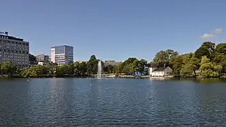 The lake lies in the city centre of Stavanger, on the border of the boroughs of Storhaug and Eiganes og Våland. The Stavanger Cathedral, the City Park, and Stavanger Cathedral School lie on the northern shore of the lake. The Stavanger train station is located on the south shore of the lake.[1]
