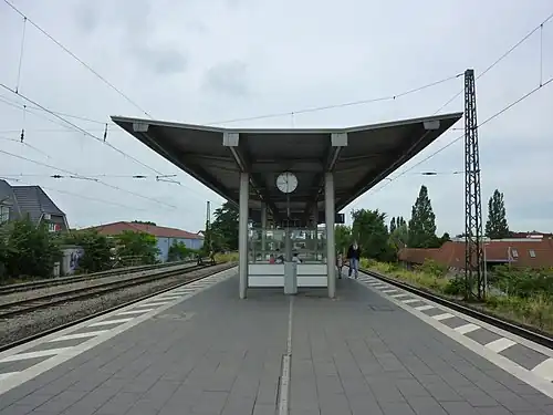 Bremen-Oslebshausen is a railway station located on the Vegesack-Bremen and Bremen-Bremerhaven railway lines. Only services on the Vegesack-Bremen line call at the station; services to and from Bremerhaven pass through without stopping.