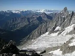 The Brenva Glacier (French: Glacier de la Brenva, Italian: Ghiacciaio della Brenva) is a valley glacier, located on the southern side of the Mont Blanc massif in the Alps. It is the second longest and eighth largest glacier in Italy, and descends down into Val Veny, close to Entrèves, near Courmayeur. Over the centuries it has experienced a number of major rock avalanches which have shaped the glacier and influenced its movement.
