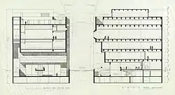 945 Madison Avenue was designed for the Whitney Museum of American Art by Marcel Breuer & Associates – primarily Breuer himself and his partner Hamilton P. Smith. Michael H. Irving was the consulting architect, and Paul Weidlinger was the structural engineer.[5][14] The work was the most significant in New York City for Breuer, and one of the most important of his career.[15] It was his first museum commission,[16] and his first and only remaining work in Manhattan.[17][18] Breuer was originally a student of the Bauhaus architecture and design school, though he later became one of the leading figures in "New Brutalism" or Brutalism.[19]