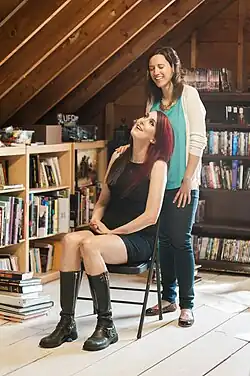 Along with Anita Sarkeesian and Zoë Quinn, Wu was one of the targets of Gamergate harassment.[46][49][51][52] In February 2015, she said, "by attacking me so viciously, they're helping give me the visibility to usher in the very game industry they're terrified about."[53] Wu started a legal defense fund for women targeted by Gamergate. As of late 2014, the Wu family was also offering a cash reward for information leading to the prosecution of those who sent the death threats.[54][55][56] By February 2015 she said she was spending a full day a week contacting law enforcement, and was only attending events in the US with a security detail.[53] In March 2015, she said she had received 48 death threats during the previous six months.[57] As of May 2019, she and her husband were still living under aliases.[58]