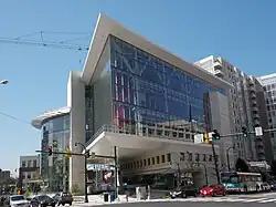 The current library location at 900 Wayne Avenue in Silver Spring was opened on June 20, 2015.[7] The facility was built for $64 million, including the acquisition of 1.46 acres (0.59 ha) of land, preparation of the site, design, construction, furniture, equipment and funds to improve the collection.[8] Construction was to cost $23 million, but $3 million was taken to renovate the Fillmore, a music venue nearby in downtown Silver Spring. The ground floor of the seven-story building has a coffee shop and a platform for the future Purple Line light rail station.[9] In 2022, the library was renamed for Brigadier General Charles E. McGee, a Tuskegee Airman who had lived in Montgomery County.[10][11]