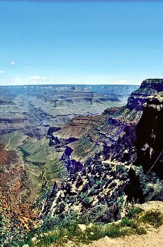 Bright Angel Creek is a creek located at the bottom of the Grand Canyon National Park flowing into the Colorado River at the end of the North Kaibab Trail on the north side of the river. The creek originates from Roaring Springs that emerge from a cliff along the North Kaibab Trail and drains to the Colorado. The North Kaibab Trail largely follows the creek, including through "the Box," a narrow, high-walled part of the trail that becomes extremely hot in daylight during the summer months (April to October).