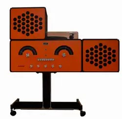 In the early 1960s Brionvega began working with notable architects and industrial designers including Franco Albini, Sergio Asti, Rodolfo Bonetto, brothers Achille, Livio, and Pier Giacomo Castiglioni, Mario Bellini, Richard Sapper, and Marco Zanuso.[2] These collaborations resulted in a decade of design innovation and the introduction of products such as the Algol 11 and Doney 14[Note 1] television sets, TS 502 "Cubo" radio, the RR 126 radiogram, which was introduced in 1966, followed by the "Cubo" television in 1969.[3][4][5][6]