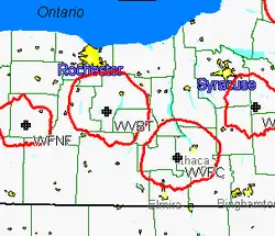 When the Rural Radio Network became the Ivy Network under new owners in 1960, WRRE became WMIV. It would retain those calls under the network's next identity, the Christian Broadcasting Network (CBN), broadcasting religious programming from studios in Ithaca between 1968 and 1981. WMIV was sold to Empire Broadcasting and in early 1982, it changed format to adult standards and its call letters to WYLF. This station operated from a studio in a converted house on NY 332 in Farmington.