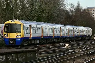 The British Rail Class 378 Capitalstar[5] is an electric multiple unit passenger train specifically designed for the London Overground network. It is part of Bombardier Transportation's Electrostar family. A total of 57 five-car trains have been built, most of which were originally built as three- or four-car units.