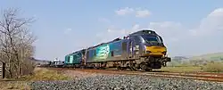 During January 2012, Direct Rail Services (DRS) announced that it had ordered a total of 15 new diesel locomotives from Vossloh España (since 2016 Stadler Rail Valencia). These locomotives, which entered service in the UK as Class 68, were part of the company's Eurolight family, redesigned to fit the smaller UK loading gauge.[2] DRS had opted to procure a clean-sheet design after examining various existing alternatives, such as the ubiquitous British Rail Class 66 locomotive, which the company's management determined to be incapable of satisfactorily replacing its ageing fleet of Class 20s, largely due to inefficient engines and elevated operating costs.[1] Vossloh undertook development of the Class 68 over an 18-month period, during which the company studied several derivatives and modifications, including the use of alternative powerplants. Having presented such proposals to DRS, the latter became particularly interested in the electro-diesel arrangement, as the company's management recognised there was a potential role for a dual-mode locomotive in the UK market.[1]