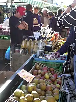Before the late 20th century, it was the site of a busy fruit and vegetable market, but this slowly dwindled over time—in the early 2000s, market activity was limited to a couple of stalls selling produce. On 8 May 2004 a food market was launched on Saturdays which has since become firmly established.[3] Broadway Market is closed to traffic when the market is being held (9 am–5 pm). Thanks largely to the market a number of new restaurants and boutiques have opened in the area.