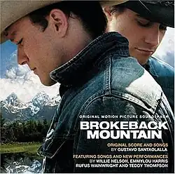 Brokeback Mountain is the original soundtrack album as an audio CD, on the Verve Forecast label, of the 2005 film Brokeback Mountain starring Heath Ledger and Jake Gyllenhaal. The original score and songs were composed and produced by Gustavo Santaolalla. The album has shipped 300,000 units worldwide and 100,000 of them have been sold in the United States.[2]