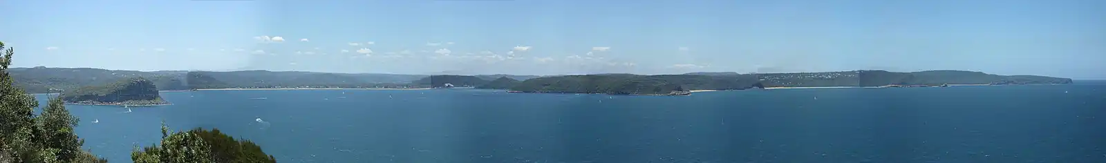 ![]() Aerial photograph showing the mouth of Broken Bay as it flows into the Tasman Sea, as seen looking across Sydney's North Shore and Northern Beaches | |