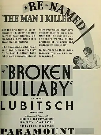 "The Man I Killed" renamed "Broken Lullaby" ad in The Film Daily, 1932