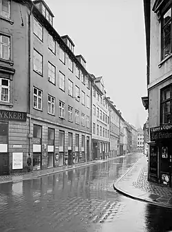 The property was home to 20 residents in three households at the 1850 census. Peter Hermann Hansen, a barkeeper, resided on the ground floor with his wife Wilhelmine Augusta Hansen (née Bloch), their 15-year-old son Ferdinand Hansen and his sister-in-law Lotte Margrethe Bloch.[13] Levin Cohen, a master tailor, resided on the first floor with his wife Jette Cohen (née Meyer), their five-year-old daughter Hanne Cohen, his sister-in-law Rikke Feiere, 25-year-old Georgine Cohen, 34-year-old Wilhelmine Salomon (needlework), 72-year-old Henriette Friedlænder (needlework) and one maid.[14] Helene Chatrine Fenger, a widow, resided on the second floor with her daughter Hertha Fenger, her sister Sara Hellesen, her granddaughter Betzy Olrik, one maid and the lodger Frederikke Bødtker (widow of an overkrigskommissær).[15]