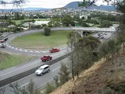 Apart from the connection to Davey and Macquarie Streets, the major intersection with streets in the CBD is the three-lane roundabout at the north-east end of Liverpool Street. Because it was built in close proximity to the Hobart railway station at the time, the roundabout was, and continues to be, called the Railway Roundabout. The sunken garden in the centre of the roundabout functions as a pedestrian thoroughfare, with under-road tunnels connecting to the two sides of Liverpool Street, the original site of the railway station to the north-east, and to the Domain and the suburb of The Glebe to the north-west. The roundabout was originally just an un-controlled intersection, but with the gradual increase in traffic, particularly from the eastern shore of the Derwent, it was often in grid-lock at peak travel times. Traffic lights were introduced and alleviated the situation, and later construction of the direct links from the Tasman Bridge to Davey and Macquarie Streets further relieved the pressure. Other streets from the CBD provide access to the highway, but for much of its length to the city boundary at Risdon Road it is limited access road.