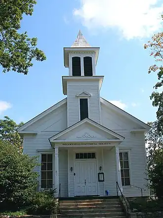 The Brookfield Center Historic District in Brookfield, Connecticut is a historic district that was listed on the National Register of Historic Places in 1991.[1] It is located in the vicinity of the junction of Route 133 and Route 25. The district represents the original settlement of the town of Brookfield and contains 67 residential, religious, and municipal buildings over a 43-acre (17 ha) area representing a wide range of architectural styles from the 18th to 20th centuries including Bungalow/Craftsman, Greek Revival, and Queen Anne style architecture. The district includes the old town hall, the Congregational Church of Brookfield, Saint Joseph Church & Elementary School, Center Elementary School (Public), the former general store (now a real estate agency), St. Paul's Episcopal Church, and the surrounding residential neighborhood.[2][3] The district is architecturally significant as an accurate representation of the historical development of the original settlement of the Town of Brookfield as the buildings are well-preserved from the time they were built with minimal alterations and intrusions, including their spatial relationships to one another.[4]