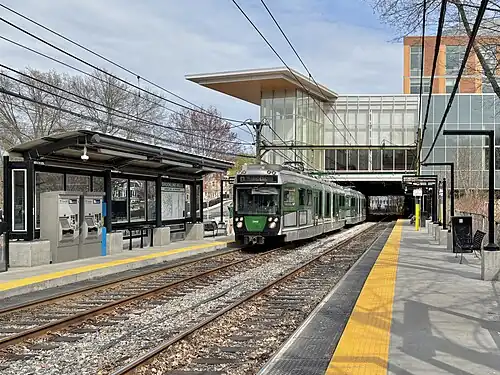 The station was renovated with fully accessible platforms as part of an expansion of Brookline High School, which included a new school building partially over the eastern end of the platforms.[12] Construction began in late 2019; the station closed on April 12, 2021 for the final phase.[13][14][15] The renovated station opened on January 8, 2022.[16][17]