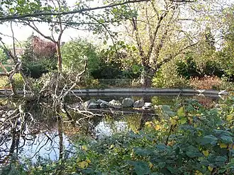 During DLR extension to Lewisham in the 1990s, the River Ravensbourne was rerouted. Most of the park to the east of the river was used for the DLR track and the Ravensbourne's new channel became the eastern boundary of the park. The park was re-landscaped by W.S. Atkins, also incorporating a site that had belonged to Thames Water as a formal garden with ponds, pergolas and flowerbeds. The park reopened in 1998.[2]