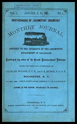 An early attempt to form a union for locomotive engineers was made on 6–9 November 1855 at a meeting in Baltimore at which it was agreed to form a "National Protective Association of the Brotherhood of Locomotive Engineers of the United States". Benjamin Hoxie was elected president, and William D. Robinson secretary. The organization held a number of meetings up to the outbreak of the American Civil War in 1861, but did not make much progress.[2] In April 1863 nineteen locomotive engineers met at Robinson's house and decided to form the brotherhood. At a meeting on 8 May 1863 in Detroit the name "Brotherhood of the Footboard" was chosen and Robinson was elected as the first grand chief engineer.[3] It was a mutual aid society which created a variety of accident, death and burial insurance programs for its members.[4]