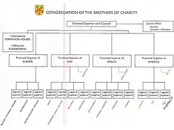 The Congregation is divided into four administrative provinces that correspond with the continents: Europe, the Americas, Asia and Africa. These four provinces represent a total of 14 regions that correspond in turn with the countries where the brothers are present. The superior general is elected for a term of six years by the general chapter and he runs the Congregation with the help of the general council, and the provincial and regional superiors. In the United States, they have houses in Philadelphia and Washington, D.C.[5]
