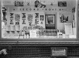 As this popular front strategy progressed leading up to World War II, Browder further de-emphasized Marxist rhetoric in an appeal to American patriotism in order to appeal to a broader audience in U.S. politics. In June 1936, at the 9th National Convention of the CPUSA in New York, Browder's report proclaimed, quoting his earlier essay "What is Communism?" earlier that year, "We Communists claim the revolutionary traditions of Americanism! [...] We are the Americans and Communism in the Americanism of the twentieth century." This shift coincided with Comintern policy under Joseph Stalin, which still supported the popular front strategy worldwide up until the Molotov–Ribbentrop Pact and the beginning of World War II. Due to the undermining of the Soviet Union's anti-fascist reputation, the CPUSA's ranks and recruitment numbers diminished.[4] Browder was imprisoned in 1941; following his early release a year later, he returned to the general secretary position strongly in support of the American war effort, contrasted by the accusations of "imperialist war" the party previously made. This led to the brief end of class conflict and beginning of class collaboration in Browder prioritizing the popular front in the party's appeal above all else. These tendencies of Browderism, emphasizing an uncompromising popular front and aim to popularise the party with Americans culminated in 1944, when the CPUSA was officially dissolved for a short time and was restructured into the Communist Political Association.[5] This decision from Browder, though receiving unanimous support from the National Committee as a constitutional convention for the new organization was planned for May 1944,[6] there was bitter opposition to this change in the form of the Foster-Darcy letter, co-signed by CPUSA factional rival William Z. Foster and Philadelphia District Organizer Samuel Adams Darcy. Limited circulation of the letter was tolerated within the party leadership, but later would lead to Darcy's expulsion by a CPA committee headed by Foster,[7] who submitted to party discipline as emphasized by Browder.[8]